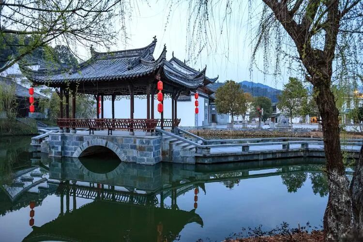 夢里老家,位于婺源縣城南郊約5公里處,緊鄰高鐵站,僅需5分鐘車程即可抵達(dá),地理位置優(yōu)越。這片度假區(qū)占地1300余畝,被水環(huán)繞,四周生態(tài)環(huán)境優(yōu)美,自然資源豐富。