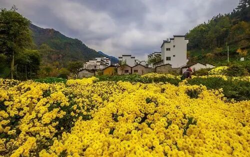 麻果,又名糯米粿,是婺源的傳統小吃,外層裹著香甜的芝麻和白糖。婺源人為了延長其保質期,常在其上撒上一層米粉。麻果可以蒸熟后蘸白糖食用,也可以放在火爐上烘烤,不同的吃法帶來不同的風味體驗。這種小吃與菜包外觀相似,實則風味迥異。烏佬果的外形宛如晶瑩剔透的水晶包,其奧秘在于外皮是用葛根粉精心制作而成。內餡則以韭菜和豆腐為主,獨特的組合帶來別樣的口感。當然還有婺源的特色,婺源曉起皇菊,正宗曉起村種植的皇菊花