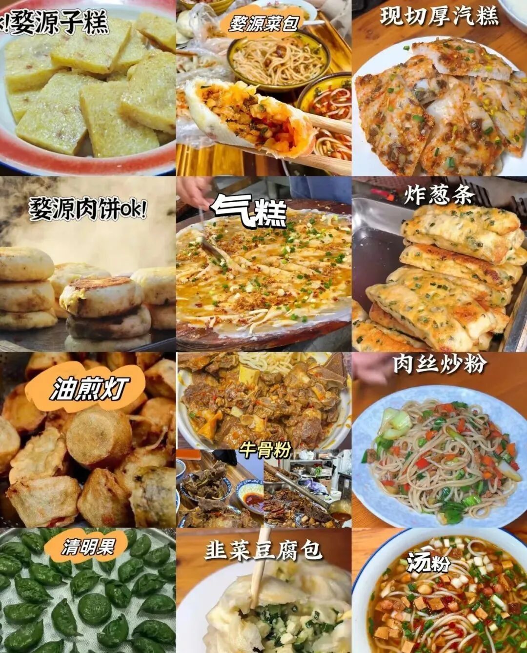 豆腐包、婺源米粉、汽糕、糯米子糕、中云肉餅