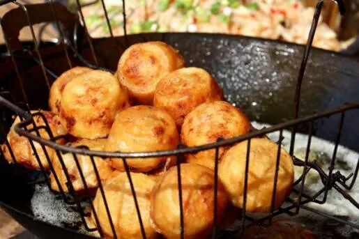 油煎燈,一道香脆可口的炸食,外層由米漿包裹,內餡則多變,常見的有酸菜、蘿卜、豆角、筍干等多種選擇。外皮酥脆,內里軟嫩,滿溢著誘人的香氣,讓人食欲大增。